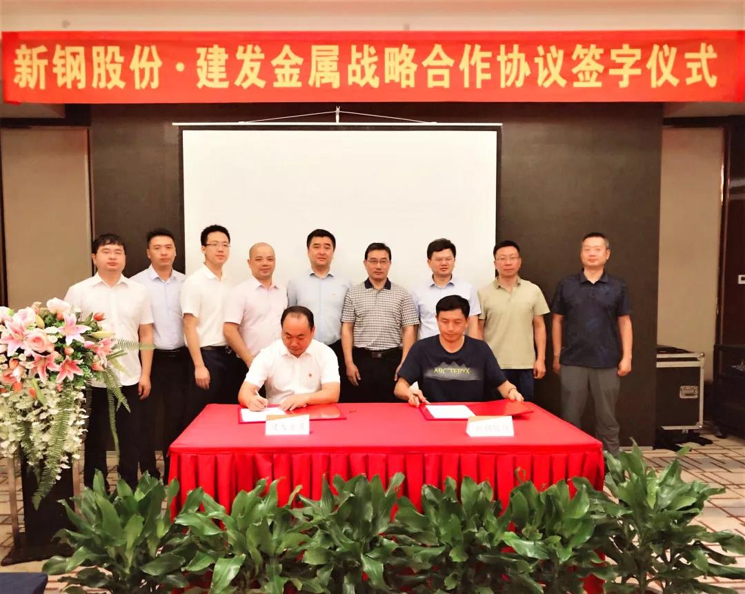 (新鋼股份肖忠東、建發(fā)金屬張清華分別代表雙方簽訂戰(zhàn)略合作協(xié)議)