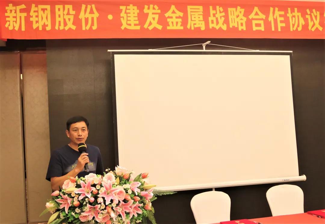 新鋼股份總經(jīng)理助理肖忠東在致辭中表示,新鋼股份與建發(fā)金屬合作時間雖然不長,但是在較短時間內(nèi),雙方合作業(yè)務(wù)范圍不斷拓展,合作友誼不斷加深。今年是新鋼股份建廠六十周年,在新鋼股份六十年的發(fā)展過程中,離不開包括建發(fā)金屬在內(nèi)的合作伙伴的大力支持和幫助。這次戰(zhàn)略合作協(xié)議的簽訂,標(biāo)志著雙方合作提升到了一個新的水平,邁上了一個新的臺階。