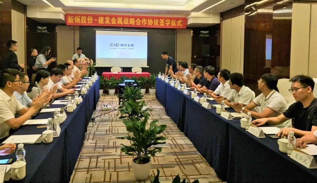 2018年8月4日上午,新鋼股份與建發(fā)金屬戰(zhàn)略合作協(xié)議簽訂儀式在長沙舉行,新鋼股份總經(jīng)理助理肖忠東、廈門建發(fā)金屬公司總經(jīng)理張清華分別代表雙方簽訂戰(zhàn)略合作協(xié)議。新鋼股份、建發(fā)金屬公司有關(guān)人員參加了戰(zhàn)略合作協(xié)議簽字儀式。